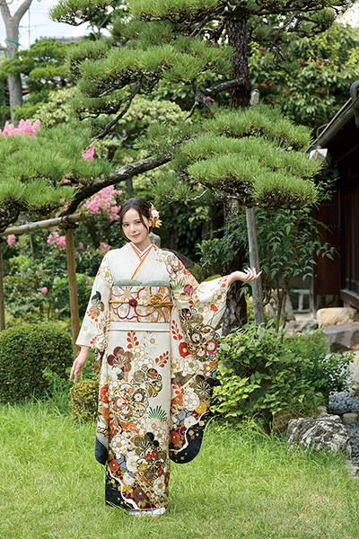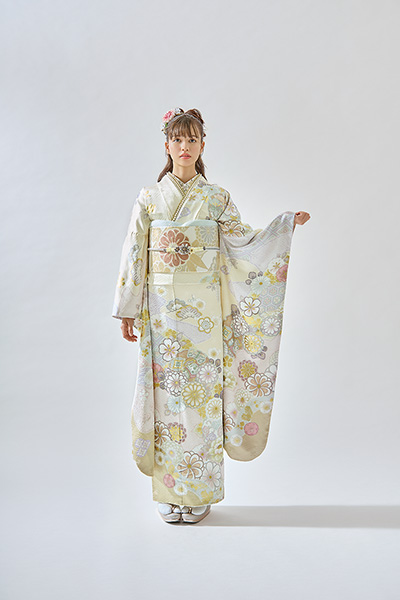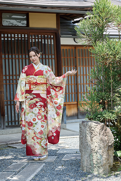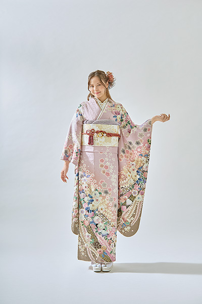 袖の袂が特に長く、着物の中でも一層華やかに映るのが振袖のおおきな特徴です。